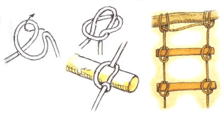 В завершении этого поста еще один интересный способ сделать полезную вещь при помощи веревки и палок. Изучив рисунок, вы сможете соорудить лестницу в полевых условиях.